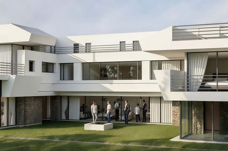 Inspired by the philosophy of Frank Lloyd Wright, this residence is envisioned as a harmonious dialogue between built form and its natural surroundings—where architecture does not dominate the landscape, but becomes a part of it.