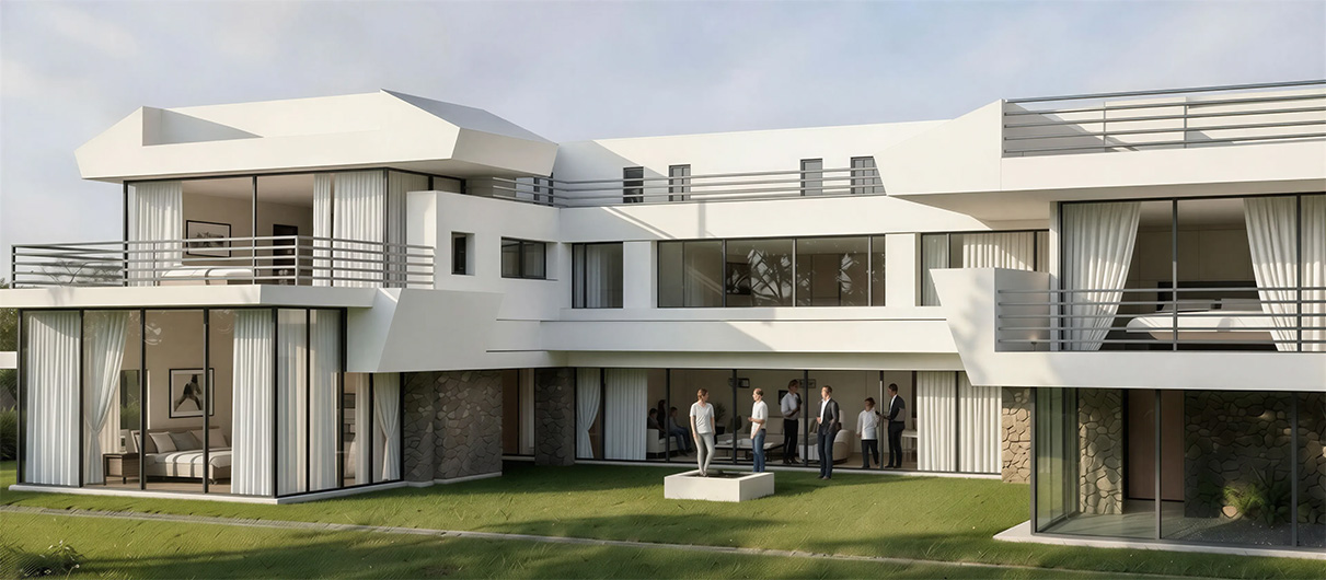Inspired by the philosophy of Frank Lloyd Wright, this residence is envisioned as a harmonious dialogue between built form and its natural surroundings—where architecture does not dominate the landscape, but becomes a part of it.